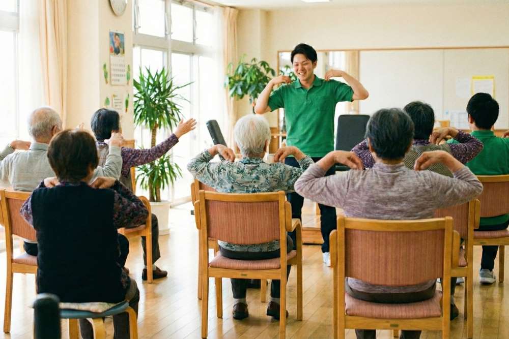 専門スタッフ(理学療法士など)や介護スタッフによる、歩行訓練や筋力維持の体操
