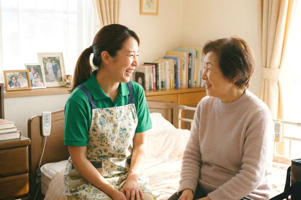 1日複数回、15分程度の短い訪問を繰り返します。安否確認、排泄介助、水分補給など、生活のリズムを作ります